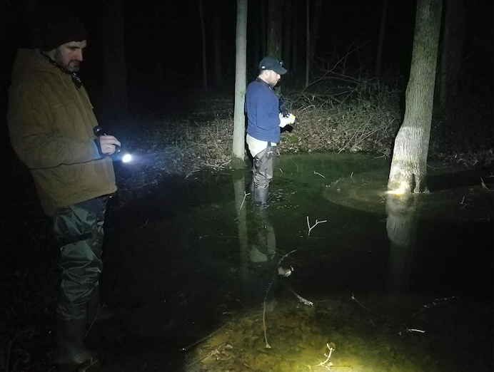 The Susquehannock Wildlife Society research team takes you inside of an annual event in nature that few ever get to experience, the spring amphibian breeding in a vernal pool at night. In this very special place in the coastal plain of Harford County, Maryland, iconic species such as the spotted salamander, wood frogs, spring peepers and even fairy shrimp were all found in healthy numbers. Vernal pools (wetlands that typically are filled by rain/snow and dry up each year) provide critical habitat for the life cycle of a number of species that rely on wetlands that lack certain predators like fish that can establish themselves in permanent wetlands. It is important that we protect our local vernal pools from pollution and unnecessary destruction so that these incredible species and this amazing annual event continues on for many more generations to come.